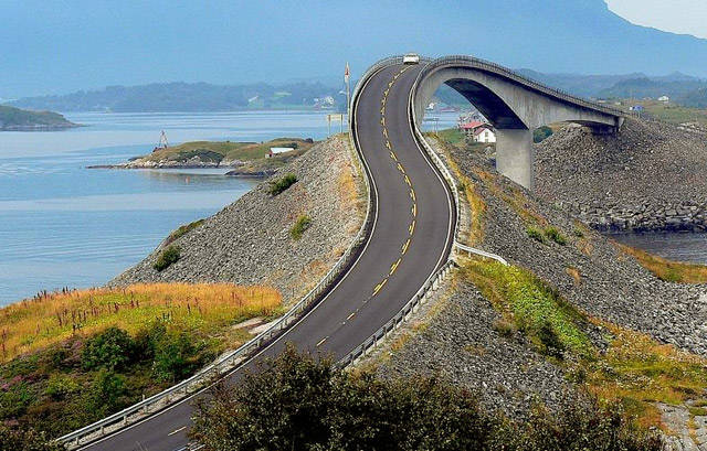 De Atlanterhavsveien, of Atlantic Road, werd in 2005 tot ‘Noorse constructie van de eeuw’ verkozen door de Noren zelf. Deze 8.72 kilometer lange weg verbindt kleine kustgemeenschappen.
